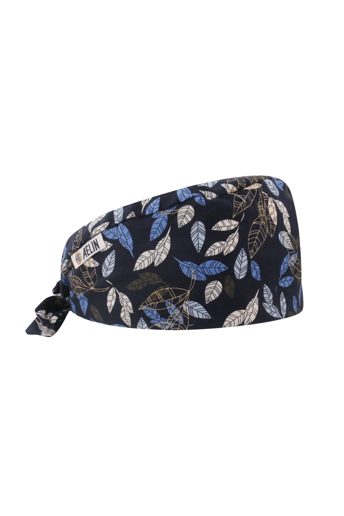 Calot de bloc – Bleu marine imprimé feuilles – Cheveux courts